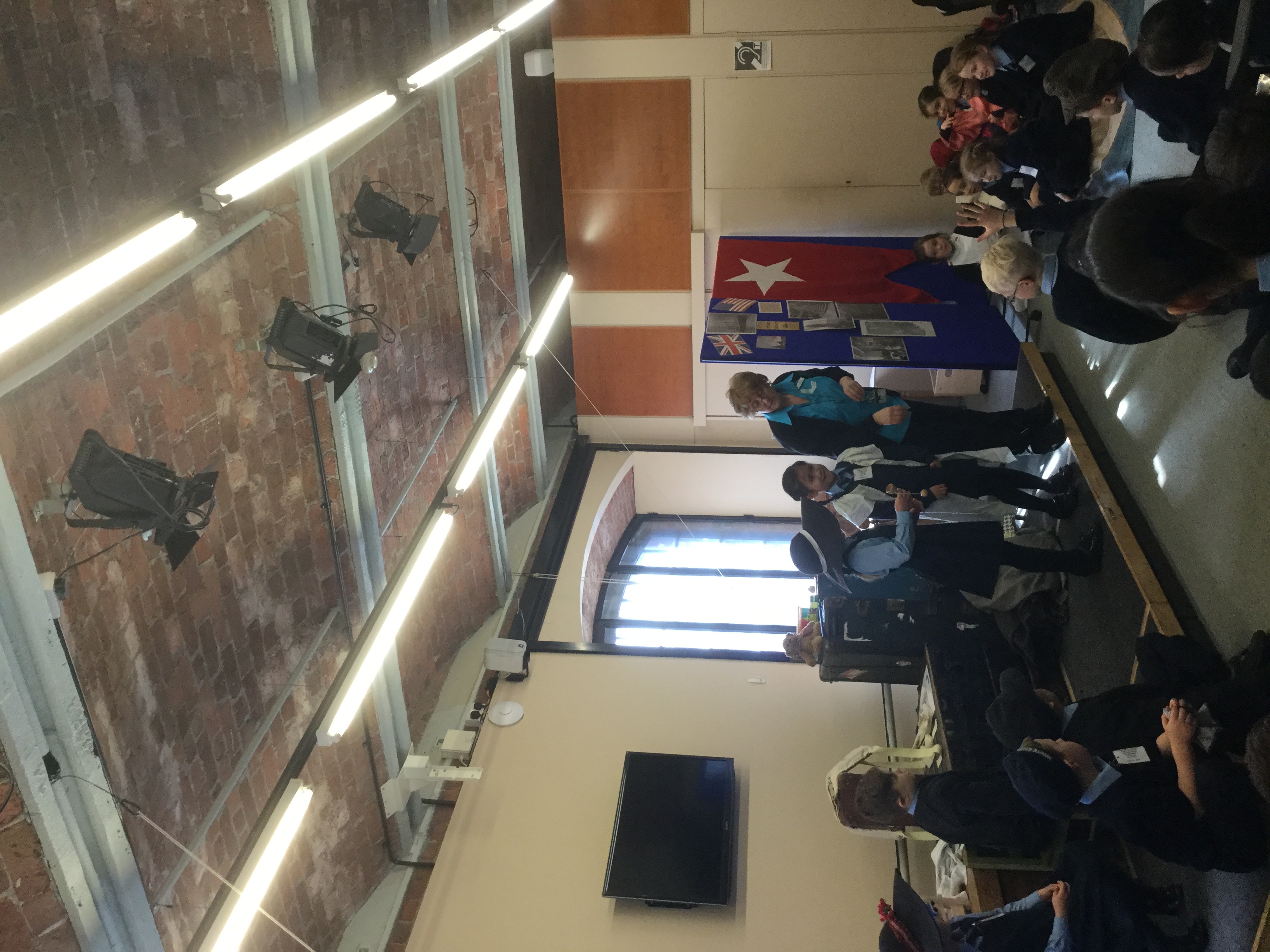On the way into the hall every child in Year 5 and 6 was given 2 coloured pieces of paper, orange and blue.